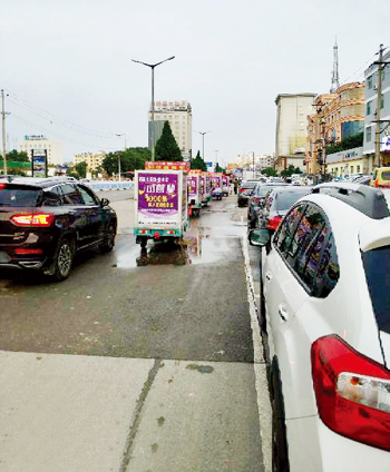 廣告宣傳車(chē)頻繁出現(xiàn)在城區(qū)各主要街道上,走走停停,造成交通擁堵及城市噪音污染。希望相關(guān)部門(mén)進(jìn)行監(jiān)管。一網(wǎng)友攝于7月23日