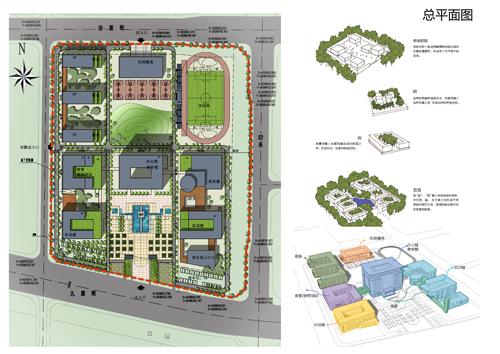 我們本著國(guó)匠精神-九宮格布局、山水格局-背山面水、四水歸堂的設(shè)計(jì)理念,團(tuán)結(jié)上學(xué)、振興技校的精神,努力將本項(xiàng)目打造成為忻州市的新名片,圓技校學(xué)生一個(gè)大學(xué)夢(mèng)。我們注重整體空間的舒適性、藝術(shù)性,不強(qiáng)調(diào)過(guò)分統(tǒng)一。設(shè)計(jì)中注重細(xì)節(jié)處理和學(xué)生們行為模式的考慮;將環(huán)境氣氛和設(shè)施布置的更具有靈活性、親和力,適應(yīng)寬松、生活化的教學(xué)模式。