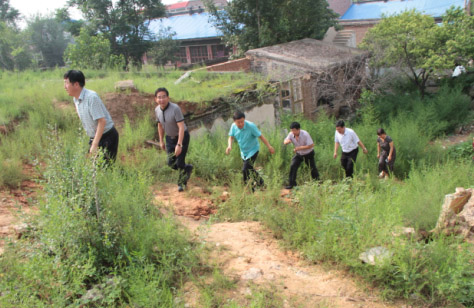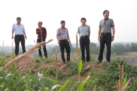 7月29日烈日炎炎,忻州氣溫高達(dá)30多度,下午16時(shí)許,忻府區(qū)區(qū)長趙志偉,副區(qū)長寧康平,忻府區(qū)國土資源局局長白蕾,解原鄉(xiāng)黨委書記丁國倉,鄉(xiāng)長王萬榮和相關(guān)部門負(fù)責(zé)人,帶著忻州市委、市政府,忻府區(qū)委、區(qū)政府對東社村村民的關(guān)懷,趕赴解原鄉(xiāng)東社村實(shí)地了解情況。區(qū)長趙志偉一行人驅(qū)車直奔現(xiàn)場,徒步來到村東南角高鐵架空橋下,認(rèn)真察看高鐵架空橋下積水形成灘涂地段和防洪渠現(xiàn)狀后,漫步爬坡而上,走到村東南土方堆放處神臺(tái)溝(地名)。親自爬上高約7、8米的土堆,沿土堆一直走到源頭察看了積水情況,經(jīng)過對現(xiàn)場地形以及土堆源頭積水情況的細(xì)致調(diào)研,一行人汗流夾背地返回村口,連口水也來不急喝就開始認(rèn)真地分析問題。