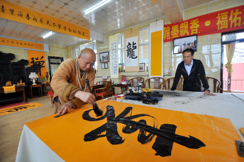 29日,中國佛教講經(jīng)交流會在五臺山召開之際,記者走訪了東臺頂望海寺釋覺一法師,他在勤修佛法的同時在書畫藝術(shù)上也自成一家。他認(rèn)為,佛法與書畫關(guān)系密切相通之處,學(xué)習(xí)佛法可促進(jìn)書法境界的提升,有助于佛法的弘揚(yáng)。