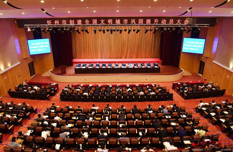 忻州市創(chuàng)建全國文明城市鞏固提升動員大會會場。劉紀森 攝