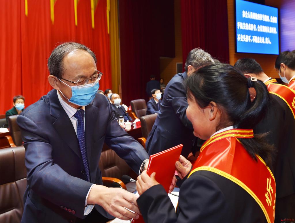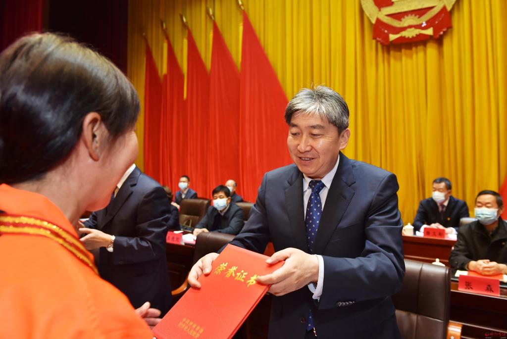 朱曉東為受表彰者頒發(fā)獎牌和榮譽(yù)證書。馮曉磊 攝