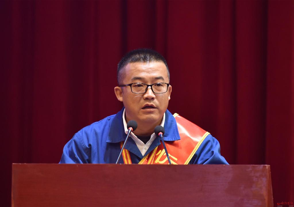 市勞模代表李杰宣讀倡議書。馮曉磊 攝