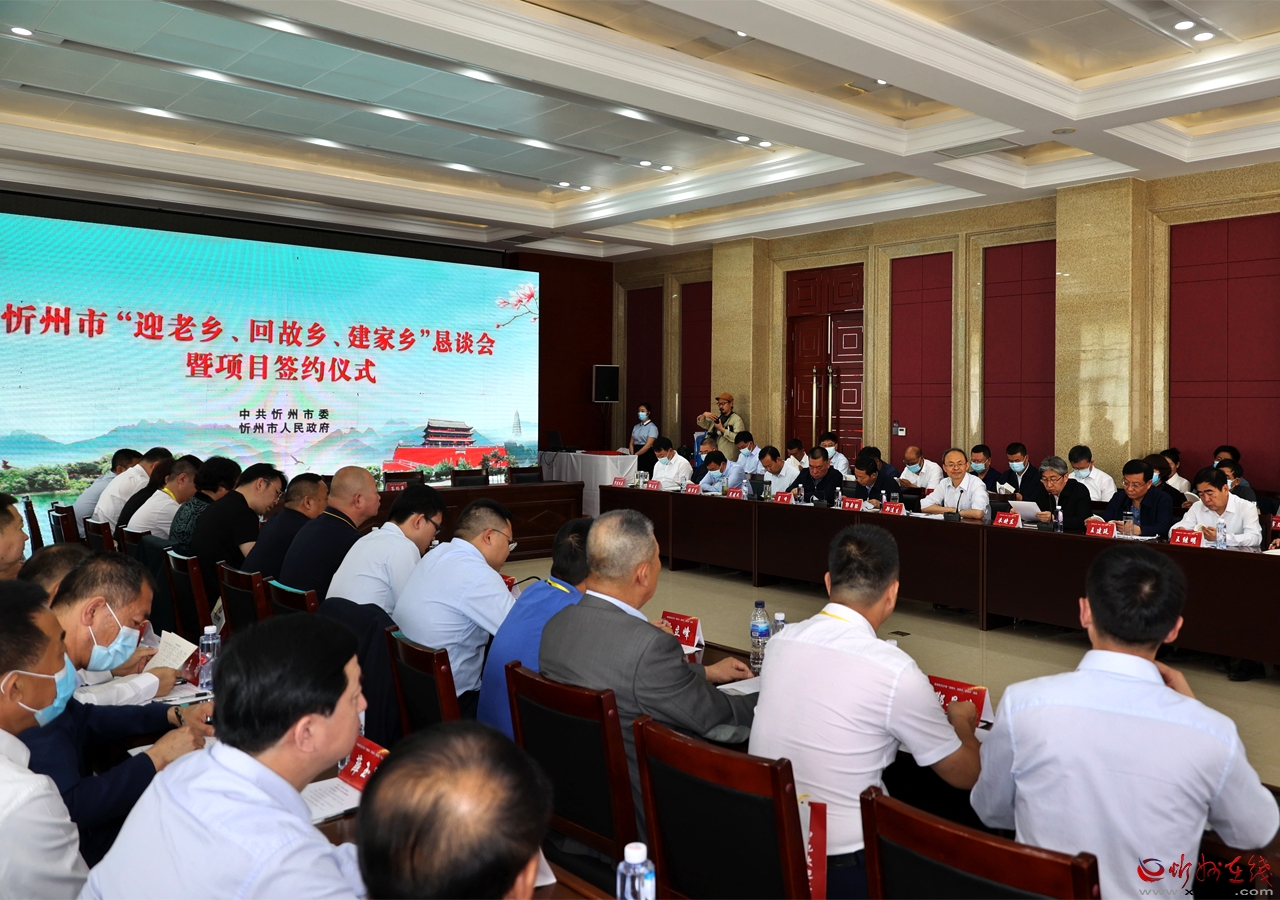 懇談會(huì)暨項(xiàng)目簽約儀式現(xiàn)場(chǎng)。張存良攝 本報(bào)訊 (記者任逢春)5月20日,忻州市2021年“迎老鄉(xiāng)、回故鄉(xiāng)、建家鄉(xiāng)”懇談會(huì)暨項(xiàng)目簽約儀式在云中河景區(qū)舉行。市委書(shū)記鄭連生主持懇談會(huì)并作重要講話(huà)。市委副書(shū)記、市長(zhǎng)朱曉東致辭。市委副書(shū)記、政法委書(shū)記、宣傳部長(zhǎng)郭奔勝講話(huà)。市政協(xié)主席王建廷,市領(lǐng)導(dǎo)裴峰、王繼明、范建民、郭寶厚等出席。逾百位忻籍企業(yè)家參加活動(dòng)。