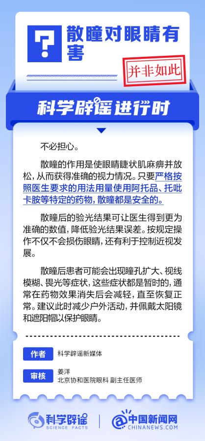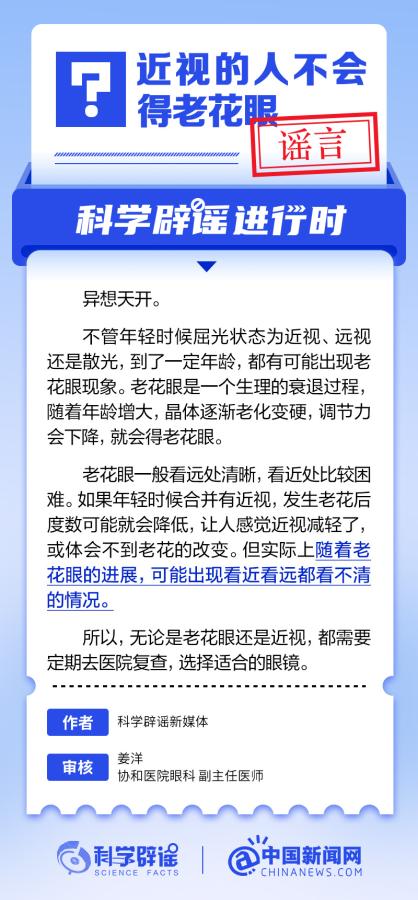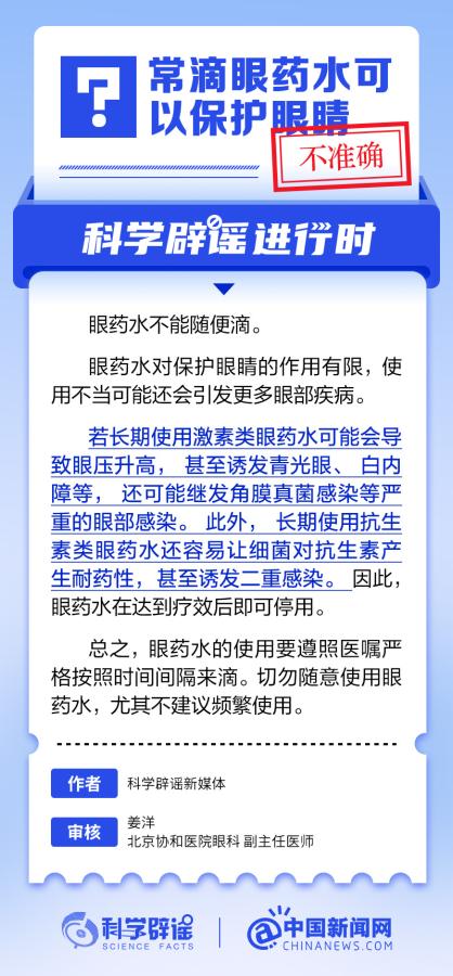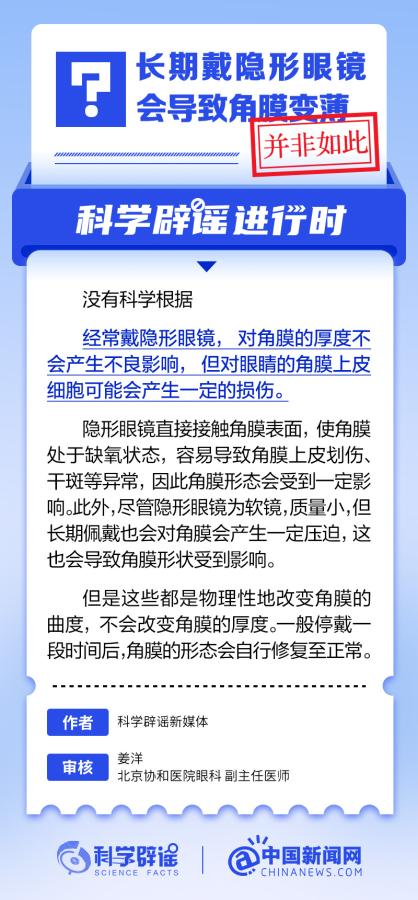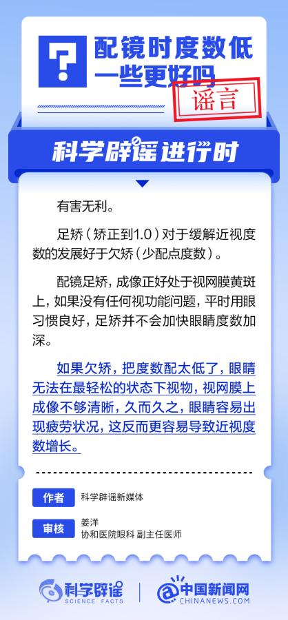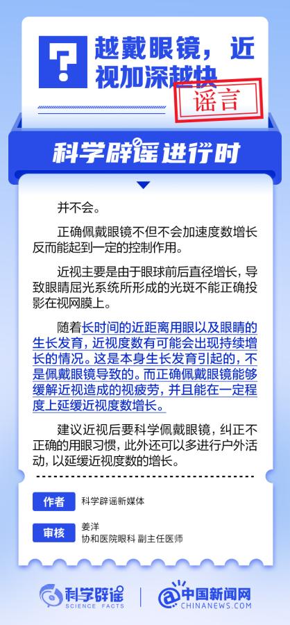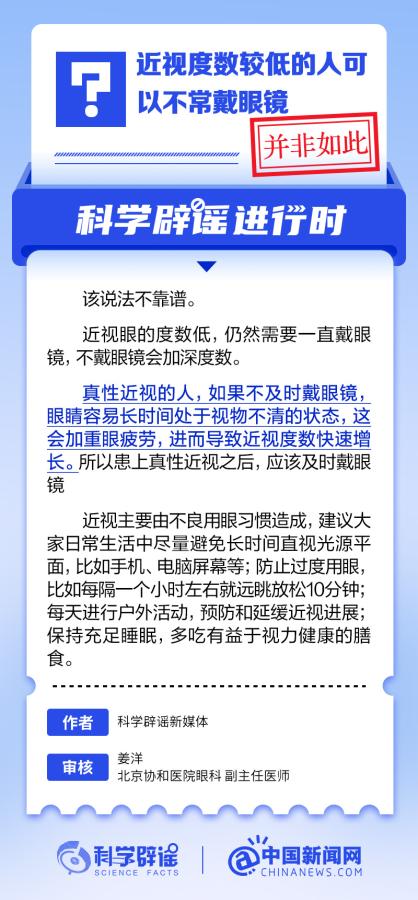 中新網(wǎng)6月6日電 6月6日是全國愛眼日。隨著大家越來越重視護眼,人們開始自發(fā)地從網(wǎng)上查找一些護眼知識,與此同時,網(wǎng)上也出現(xiàn)了很多的護眼誤區(qū)。有哪些常見的所謂“護眼知識”其實是誤區(qū)?眼鏡度數(shù)配高點好還是配低點好?詳情↓ (來源:@科學辟謠 中國新聞網(wǎng)微博)