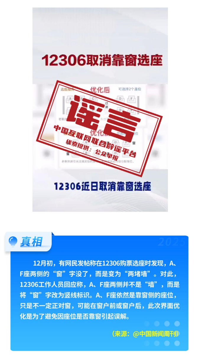 公共政策領(lǐng)域不實(shí)信息誤導(dǎo)公眾。2026年1月1日正式施行新修訂的《中華人民共和國治安管理處罰法》,網(wǎng)上出現(xiàn)“明年起向好友發(fā)送不雅照片、視頻違法”等誤讀;“一次性信用修復(fù)”政策有著嚴(yán)格的適用邊界,絕非“征信洗白”;火車高鐵“靠窗選座取消”實(shí)為12306購票界面優(yōu)化調(diào)整;“海南自由貿(mào)易港封關(guān)等于‘封島’”是對海南自由貿(mào)易港建設(shè)的整體性誤解。
