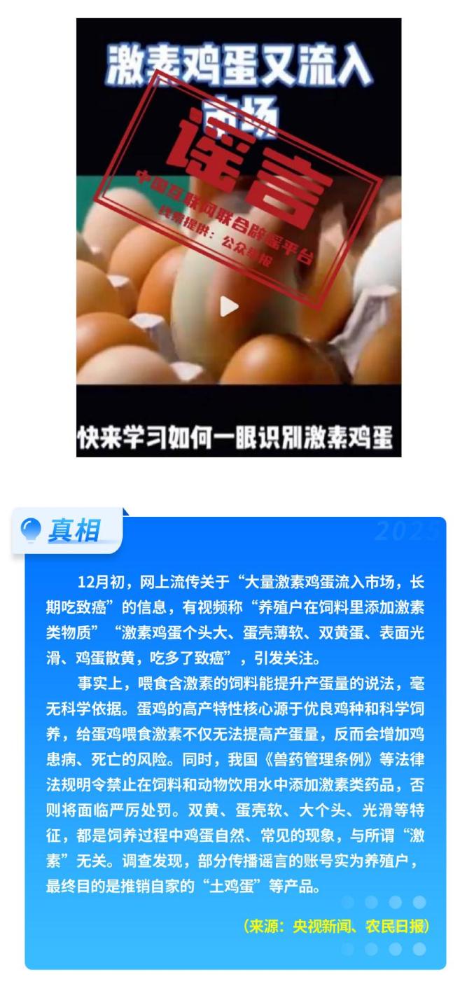 部分網(wǎng)民蹭炒民生話題制造焦慮。秋冬季流感高發(fā),期間流傳“奧司他韋、瑪巴洛沙韋出現(xiàn)耐藥”等不實(shí)傳言,干擾患者合理用藥;“‘液體口罩’一噴就能防流感”的說法,更是夸大宣傳,其所謂“防護(hù)效果”未經(jīng)臨床驗(yàn)證,設(shè)計(jì)與真實(shí)人體情況相去甚遠(yuǎn)。而“激素蛋大量流入市場”等說法毫無科學(xué)依據(jù),其背后是不良商家的推銷策略,加劇了公眾對食品安全的擔(dān)憂。