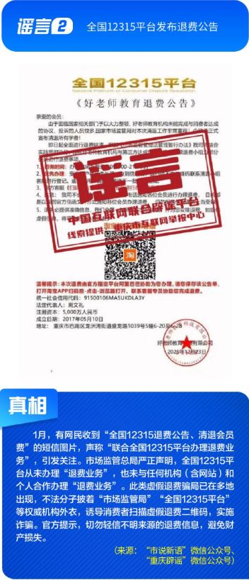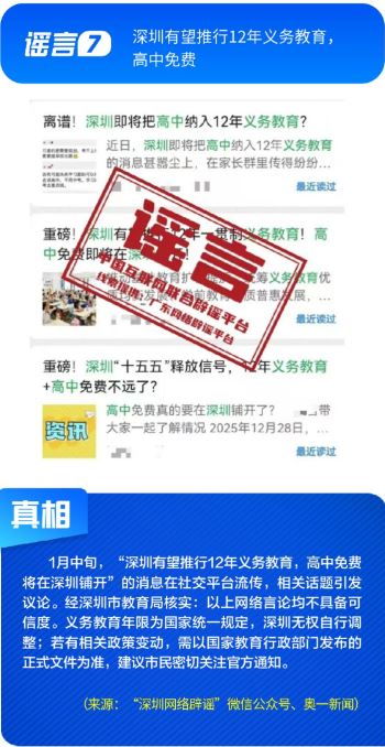 ??公共政策領域謠言誤導公眾決策?!吧绫?]有有效期限制、未到期不能換新卡”是對社保卡管理政策的誤讀,給民眾平添困擾;“28家博物館元旦期間閉館”實為少數(shù)博物館根據(jù)運營安排所做的微調,網帖嚴重夸大實際閉館情況,引發(fā)負面炒作;“深圳有望推行12年義務教育,高中免費”是對現(xiàn)行政策的“超前編造”,誤導學生及家長群體;“全國12315平臺發(fā)布退費公告”,則是假冒監(jiān)管機構名義散播不實通知,為后續(xù)詐騙行為做鋪墊。