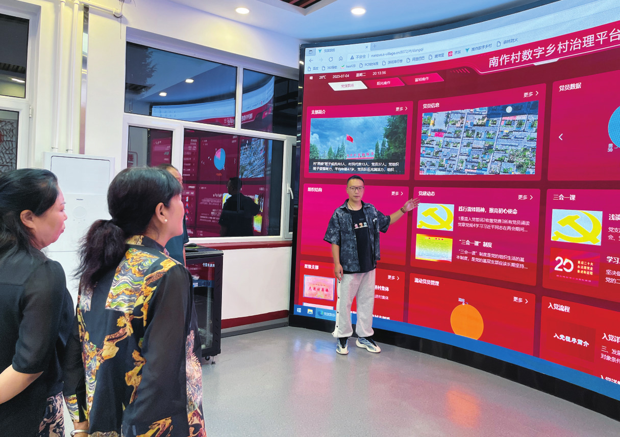 卜江濤向村民介紹數(shù)字鄉(xiāng)村治理平臺