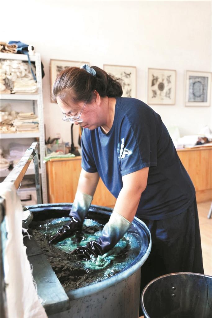 然而,當(dāng)夢(mèng)想照進(jìn)現(xiàn)實(shí),前行的路總是充滿坎坷。由于前期投入大,入不敷出的經(jīng)濟(jì)狀況讓她犯了難,為了支撐店鋪運(yùn)營(yíng),她不僅賣了房子,還貸了款?!半m然丈夫不支持,但是好在兒子很支持,最讓我欣慰的是,他常驕傲地跟別人介紹,‘這是我媽媽染的’‘我媽媽是非遺傳承人’,也正是這些,在我動(dòng)搖、想要放棄的時(shí)候,我選擇堅(jiān)持下去?!闭f(shuō)到動(dòng)情處,趙慧言語(yǔ)滿是幸福。