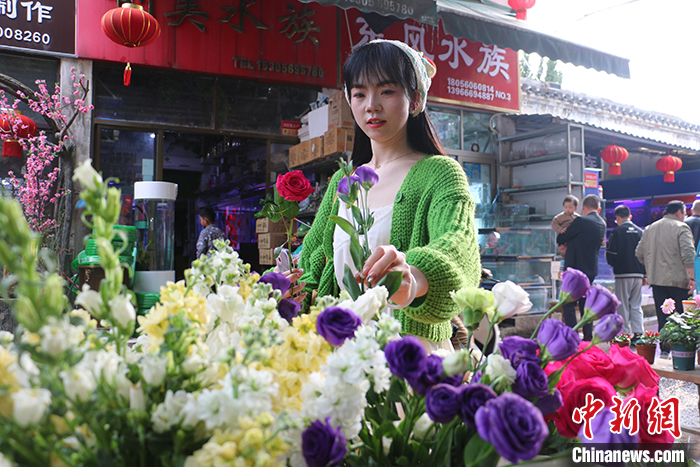 3月23日,安徽省合肥市裕豐花鳥(niǎo)魚(yú)蟲(chóng)市場(chǎng),“Z世代”女孩詹銀銀正在挑選鮮花,準(zhǔn)備擺攤銷(xiāo)售。隨著氣溫回升,鮮花市場(chǎng)迎來(lái)一波熱度。記者近日在采訪中了解到,中國(guó)年輕人正在通過(guò)各種鮮花消費(fèi)場(chǎng)景把春天“帶回家”,鮮花消費(fèi)已突破固有的節(jié)日專(zhuān)屬儀式感,成為年輕人日常“悅己”的重要方式。中新社記者 張強(qiáng) 攝