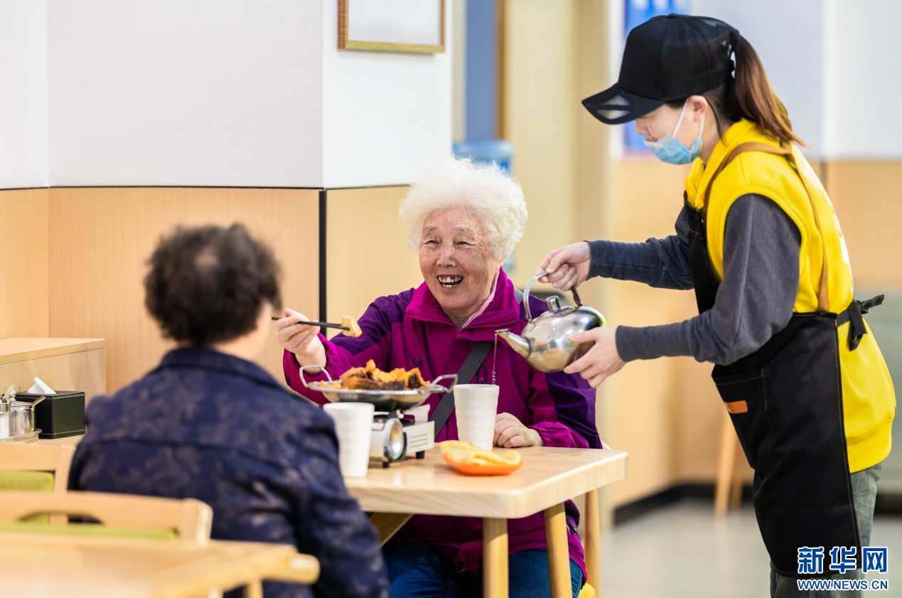 4月8日,老人在呼和浩特市玉泉區(qū)居家社區(qū)養(yǎng)老服務(wù)標(biāo)準(zhǔn)化示范中心“為老餐廳”內(nèi)用餐。新華網(wǎng)發(fā)(丁根厚 攝)