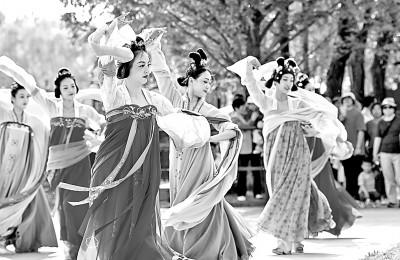 在陜西省西安市大唐芙蓉園,演員向游客呈現春日主題特色演出。新華社發(fā)