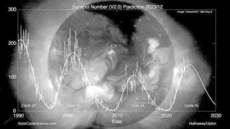 太陽“發(fā)點兒脾氣”也有周期,平均每隔11年,太陽活動就會呈現(xiàn)出由弱到強、再由強轉(zhuǎn)弱的周期性變化,這就是太陽活動周。目前正處于第25個太陽活動周的豐年,太陽將在2024年達(dá)到當(dāng)前活動周期的峰值。