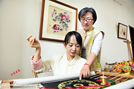 5.高寧經(jīng)常手把手教學,希望能培養(yǎng)出山西民間刺繡設計和制作從業(yè)人員,和她一起傳承山西刺繡。