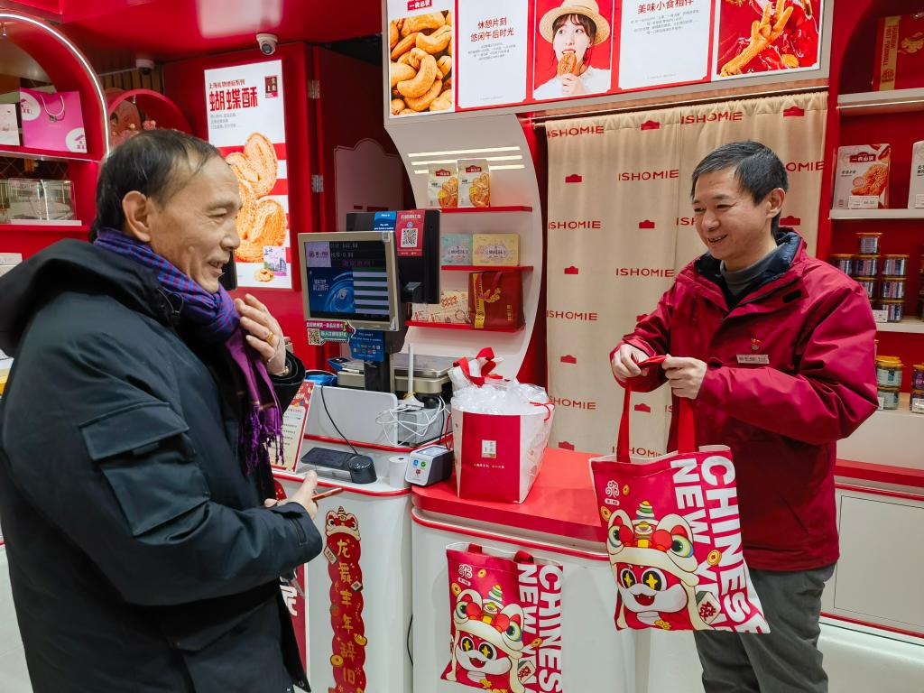 新華社上海1月20日電(記者陳愛平)走進位于南京路步行街的第一食品商店,喜慶紅火的新春裝飾、琳瑯滿目的非遺美食、排隊精挑細選年貨的顧客、笑著稱重裝袋的售貨員……過年的幸福感在掀開擋風門簾瞬間“拉滿”。