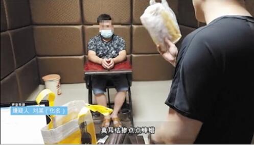 “耳結(jié)是平時收集的耳屎和蜂蠟混合做成的”劉某交代,平時會將免費掏的耳屎收集起來,在家做成“耳結(jié)”,在合適的時候把“耳結(jié)”放入客人耳中。耳朵有問題的老人“求醫(yī)心切”更容易上鉤,價格會按老人的穿著打扮試探性說一個相對高一點的,如果老人嫌貴就降價,等老人同意了再“動手”,這樣幾乎不會失手?!拔覕[攤掏耳結(jié)已經(jīng)兩年了,從來沒有人報警”被審訊時,劉某仍然不相信自己因為這事進派出所。
