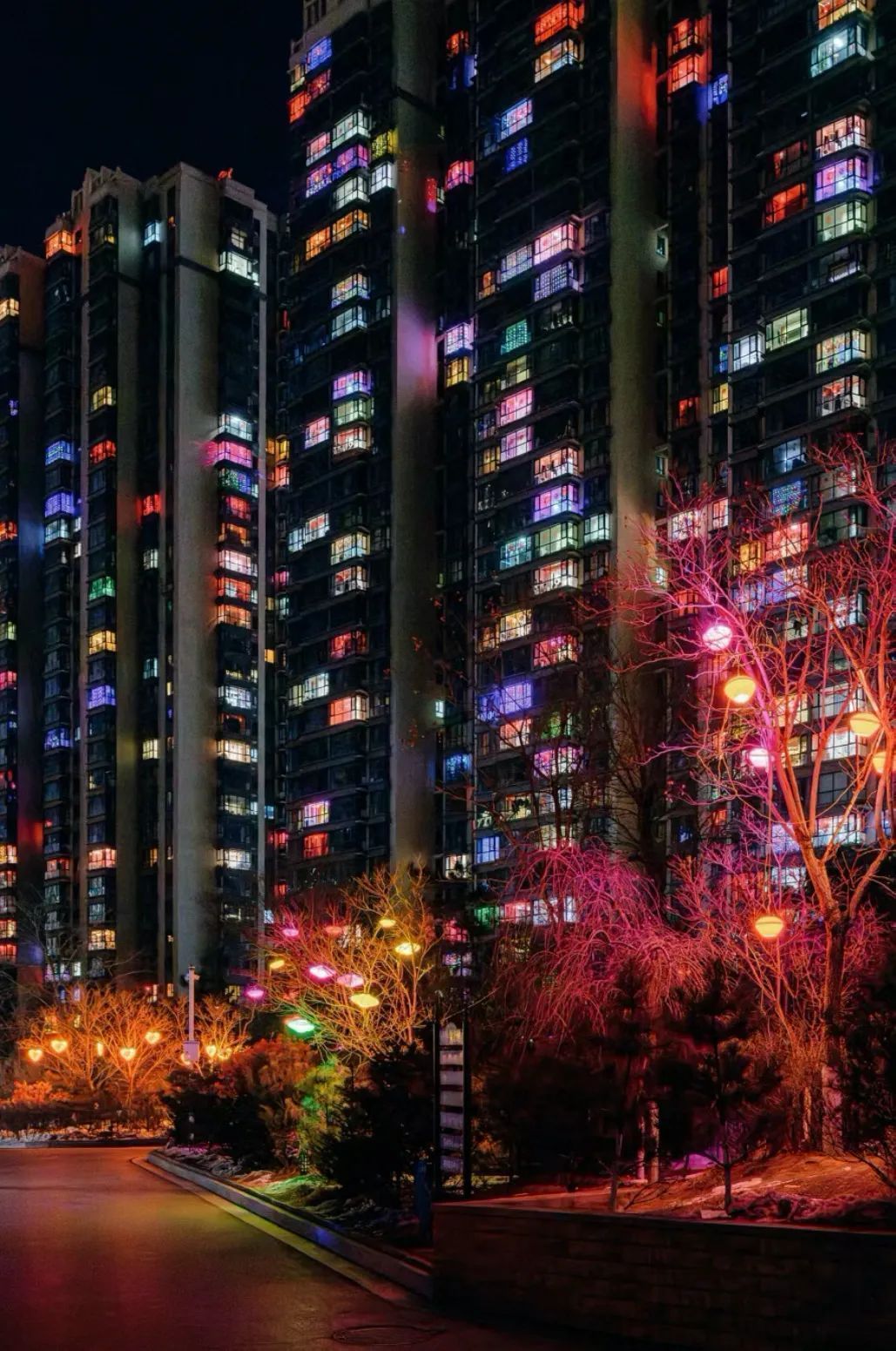 更教人驚嘆的是,大家不約而同在春節(jié)期間的夜里亮起彩燈,成百上千戶在一起頗具規(guī)模,酷炫的彩燈頗具未來(lái)感和科技感,給人一種置身未來(lái)城市的錯(cuò)覺(jué)。