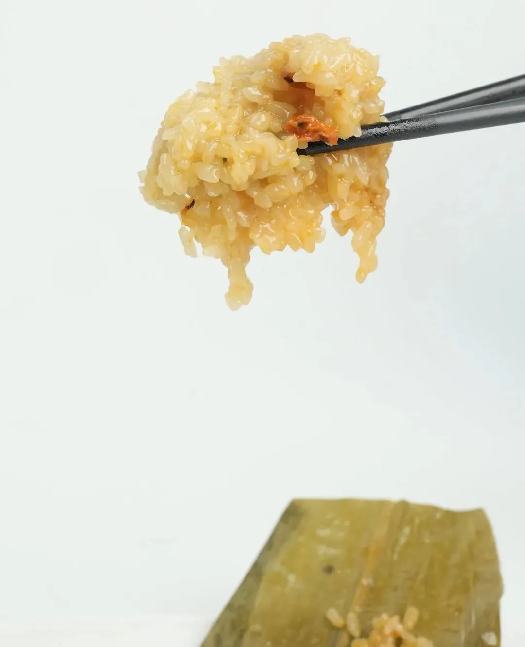 剝開以后,先是聞到江米的香味,剝開兩半,就能感受到何謂酸香撲鼻!吃起來也是甜中帶酸,酸中帶香,和傳統(tǒng)的粽子大不一樣。