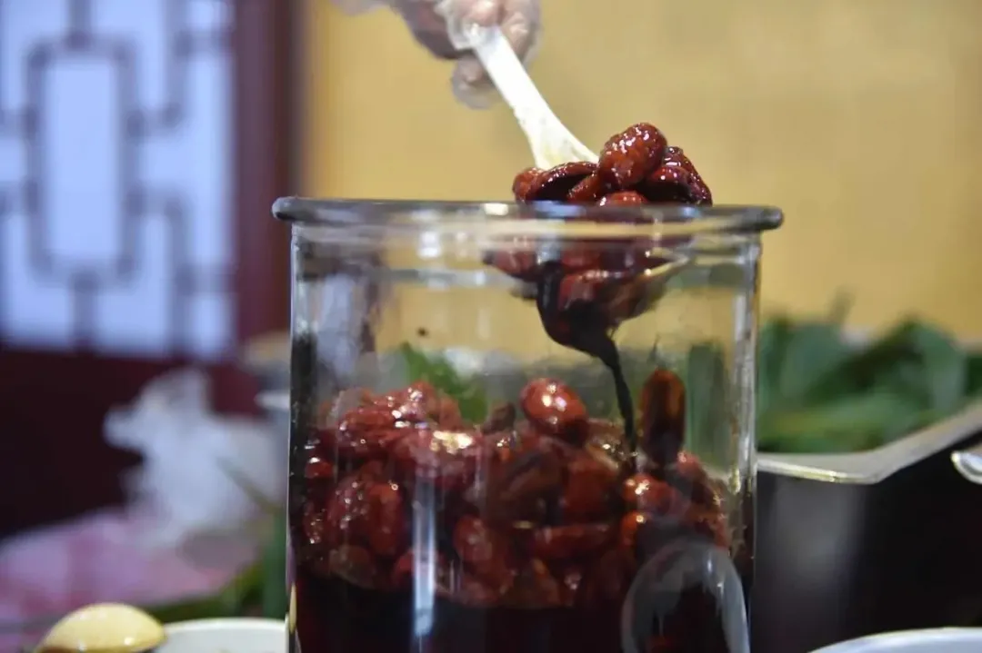 把優(yōu)質(zhì)的紅棗用3年6度的老陳醋浸泡半個月,充分發(fā)揮山西老陳醋色、香、醇、濃、酸的優(yōu)點。讓紅棗甜中帶酸,酸中帶香。