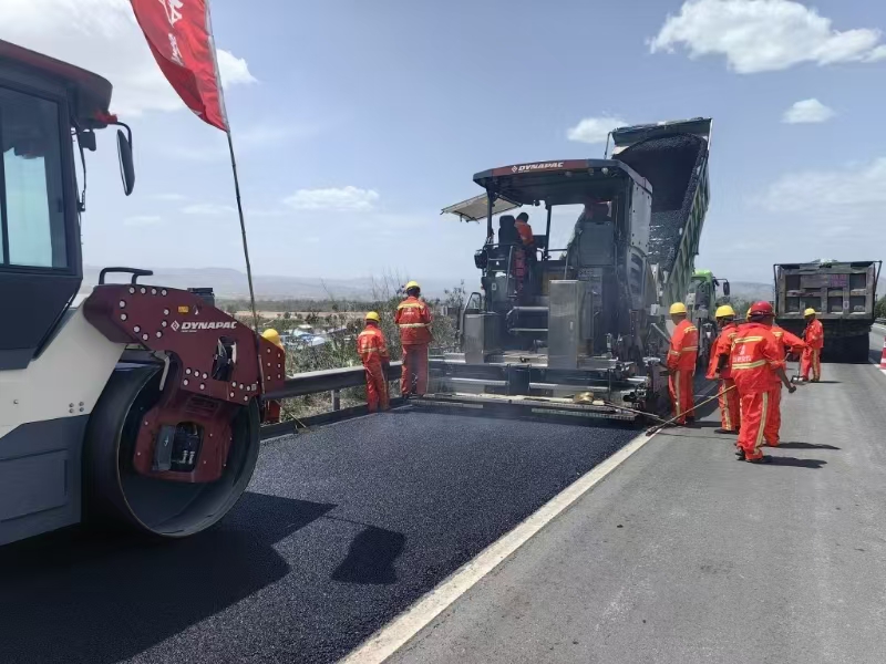 趁熱攻堅,汗水澆筑通途。“瀝青攤鋪必須‘趁熱打鐵’,溫度越高,路面壓實度、密實度就越好!”項目技術(shù)負責(zé)人解釋道。烈日炙烤下,瀝青混合料溫度高達160℃,升騰的熱氣裹挾著刺鼻氣味撲面而來,但施工人員手持鐵鍬、緊盯攤鋪機的身影卻始終堅定。每一車瀝青的傾倒下料、每一寸路面的均勻碾壓,都需要在幾分鐘內(nèi)精準完成。豆大的汗珠順著安全帽檐滴落,在瀝青路面上瞬間蒸騰,施工人員的工作服早已被汗水浸透,又在高溫中反復(fù)曬干,嶄新的道路,就這樣在灼熱與堅守中悄然延伸。