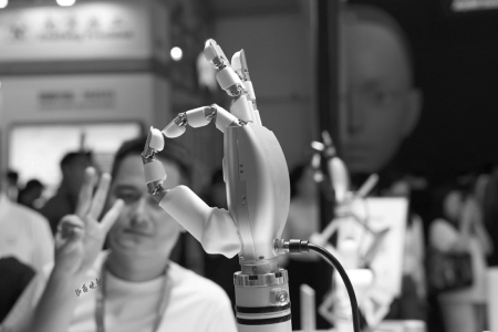 觀眾走進展會,仿佛來到未來世界:無論是在人群中來回穿梭的機器人、機器狗“宣傳小隊”,還是在各種模擬場景中展示獨特能力的人形機器人,或者是靈巧的機械手、機械臂,都充滿了科幻色彩。那些曾經(jīng)只存在于科幻電影的場景,在本屆大會集體“破圈”。