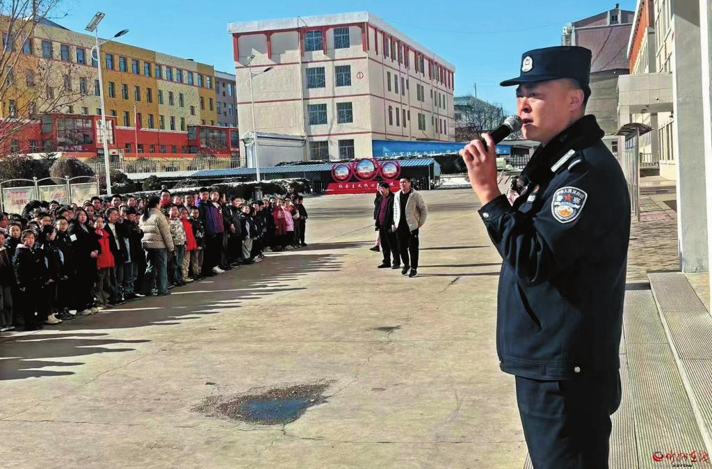 為進(jìn)一步提升鐵路沿線學(xué)生的安全意識,近日,五寨火車站派出所深入管內(nèi)鐵路沿線五華里范圍內(nèi)學(xué)校開展法治安全宣傳教育,講解鐵路行車安全知識,增強(qiáng)學(xué)生的自我防護(hù)能力。圖為民警在五寨縣第四小學(xué)開展安全教育宣傳。(索效光攝)
