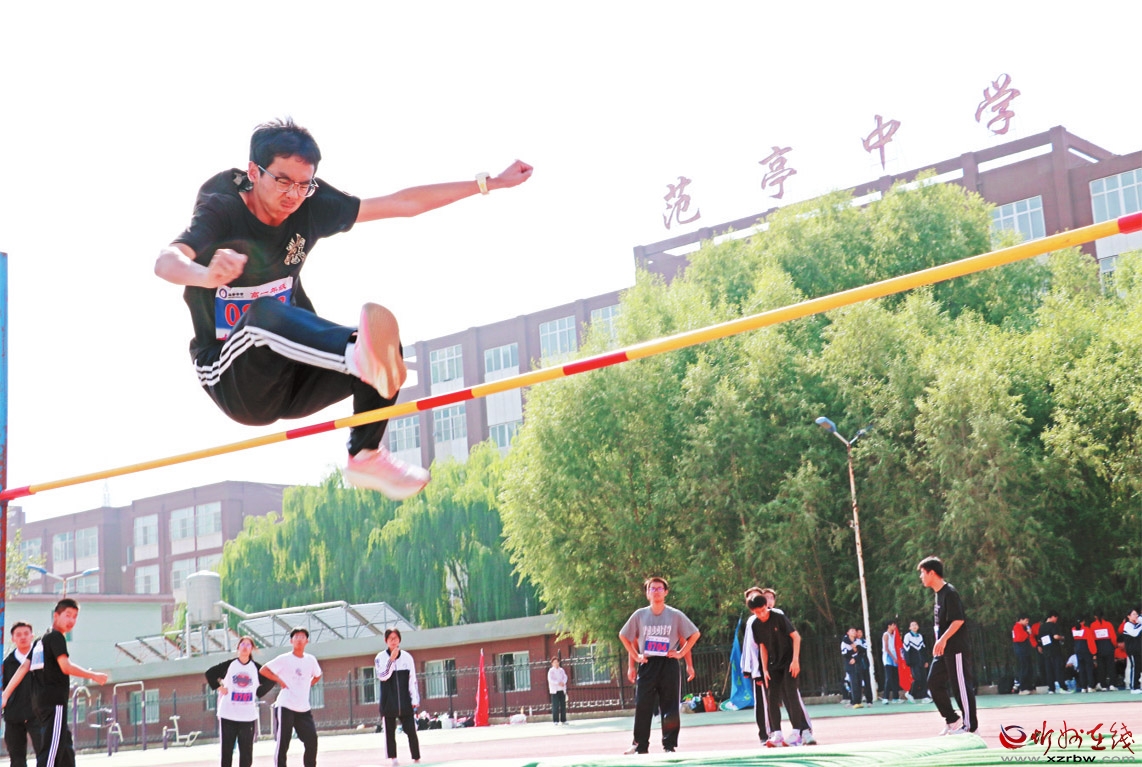 近日,2025年原平市中小學(xué)秋季田徑運(yùn)動會在原平市范亭中學(xué)體育場舉行。圖為參賽選手在跳高比賽中大顯身手。 (