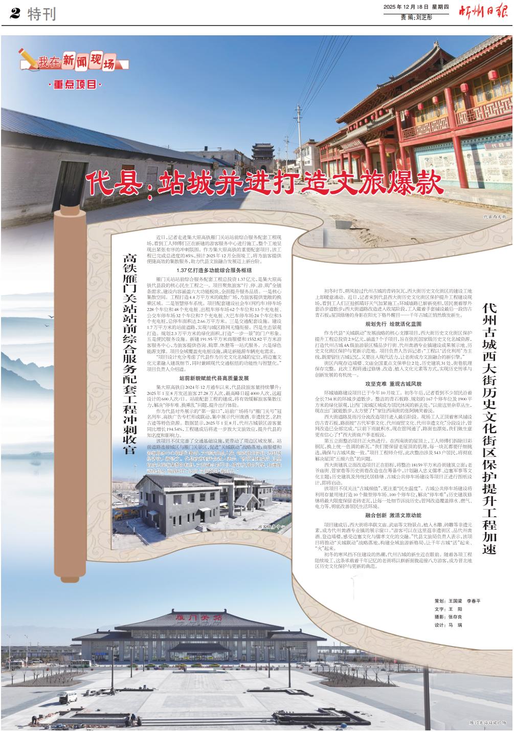 作為代縣對外展示的“第一窗口”,站前廣場將與“雁門關(guān)號”冠名列車、高鐵廣告專欄形成聯(lián)動,集中展示代州黃酒、非遺技藝、名勝古跡等特色資源。數(shù)據(jù)顯示,2025年1至8月,代州古城景區(qū)游客量同比增長194.54%,工程建成后將進一步放大文旅效應(yīng),提升代縣的知名度和影響力。