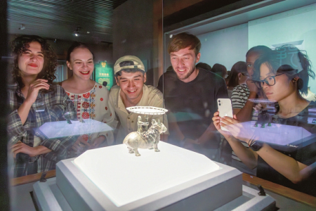 上海政法學院十余名國際留學生走進山西博物院,感受三晉文明底蘊。山西博物院供圖