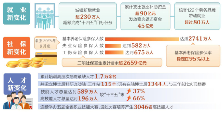 “十四五”時(shí)期,我省始終將穩(wěn)就業(yè)擺在突出位置,千方百計(jì)促進(jìn)高質(zhì)量充分就業(yè)。把經(jīng)濟(jì)發(fā)展與擴(kuò)大就業(yè)緊密結(jié)合起來,不斷優(yōu)化政策,為企業(yè)減負(fù)穩(wěn)崗,累計(jì)支出就業(yè)補(bǔ)助資金超90億元,發(fā)放穩(wěn)崗返還資金45億元。對(duì)于重點(diǎn)群體精準(zhǔn)施策、分類幫扶,開展高校畢業(yè)生等青年群體就業(yè)服務(wù)攻堅(jiān)行動(dòng),提供針對(duì)性就業(yè)創(chuàng)業(yè)服務(wù)。五年來,全省城鎮(zhèn)新增就業(yè)超230萬人,超額完成“十四五”目標(biāo)任務(wù),城鎮(zhèn)調(diào)查失業(yè)率控制在目標(biāo)以內(nèi)。
