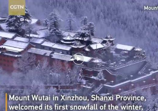 First snow paints Mount Wutai in shades of serenity(譯:初雪為五臺(tái)山披上了靜謐的色彩)