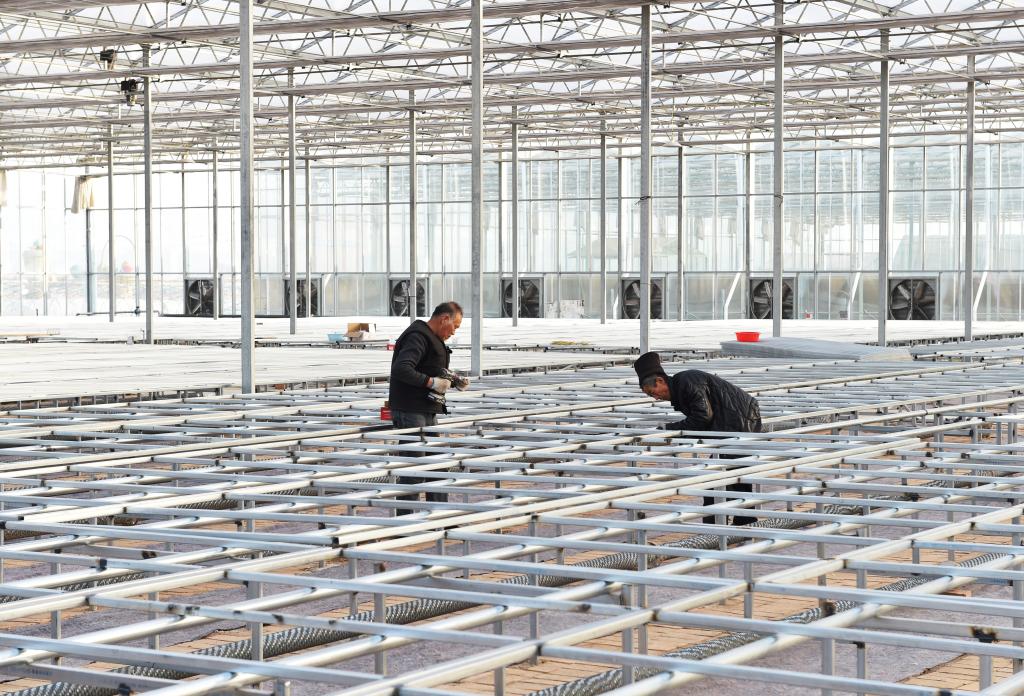 建設中的雙膜溫室大棚。 馮曉磊 攝