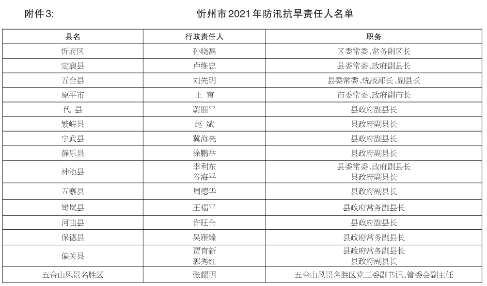 3.忻州市2021年防汛抗旱責任人名單