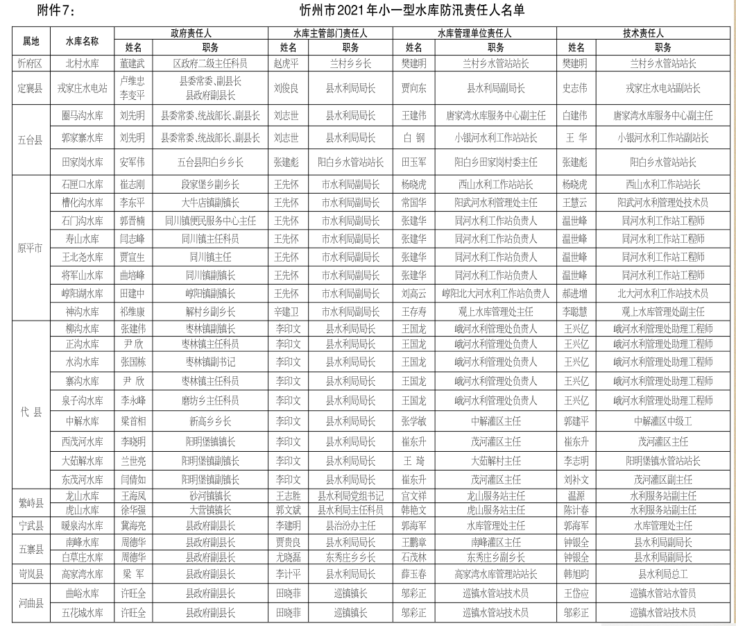7.忻州市2021年小一型水庫防汛責任人名單