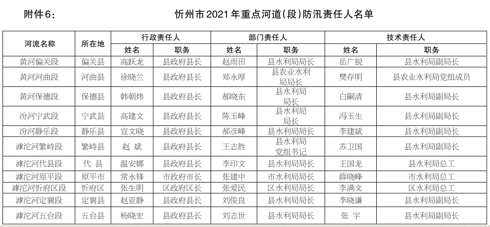 6.忻州市2021年重點河道(段)防汛責任人名單