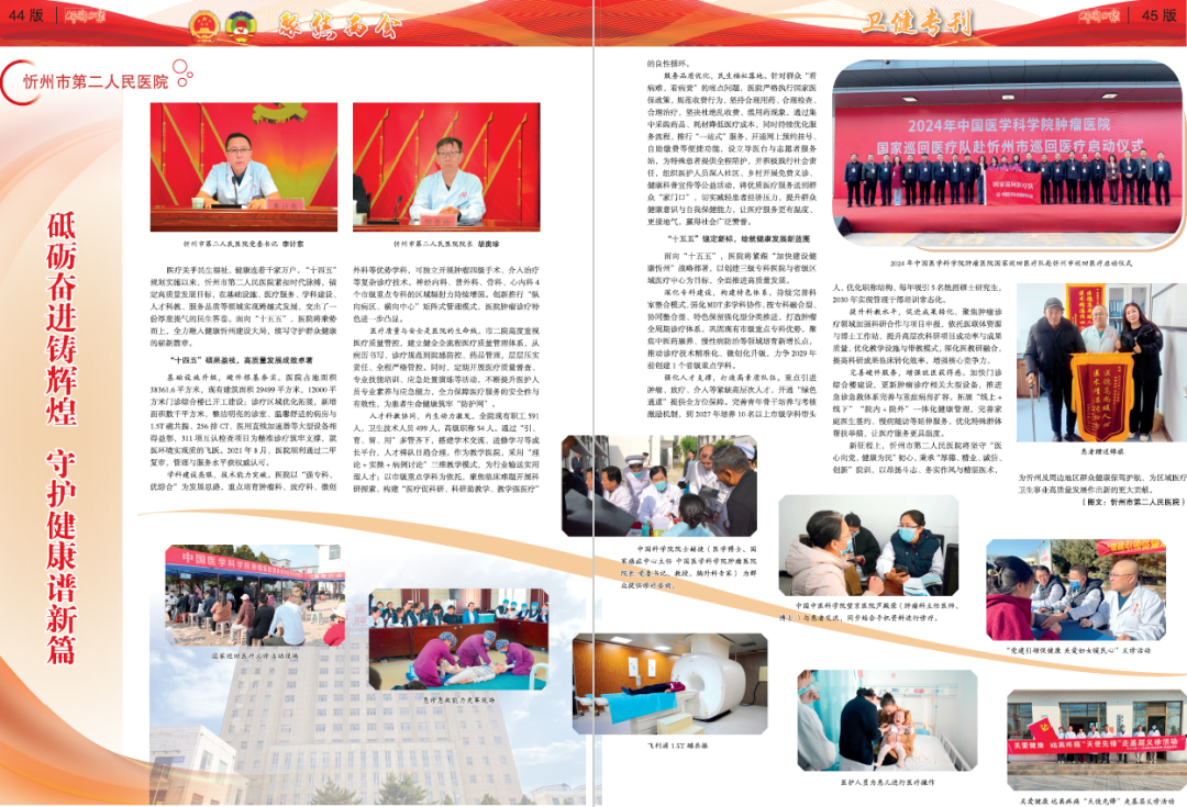 醫(yī)療關(guān)乎民生福祉,健康連著千家萬戶。“十四五”規(guī)劃實(shí)施以來,忻州市第二人民醫(yī)院緊扣時(shí)代脈搏,錨定高質(zhì)量發(fā)展目標(biāo),在基礎(chǔ)設(shè)施、醫(yī)療服務(wù)、學(xué)科建設(shè)、人才科教、服務(wù)品質(zhì)等領(lǐng)域?qū)崿F(xiàn)跨越式發(fā)展,交出了一份厚重提氣的民生答卷。面向“十五五”,醫(yī)院將乘勢而上,全力融入健康忻州建設(shè)大局,續(xù)寫守護(hù)群眾健康的嶄新篇章。
