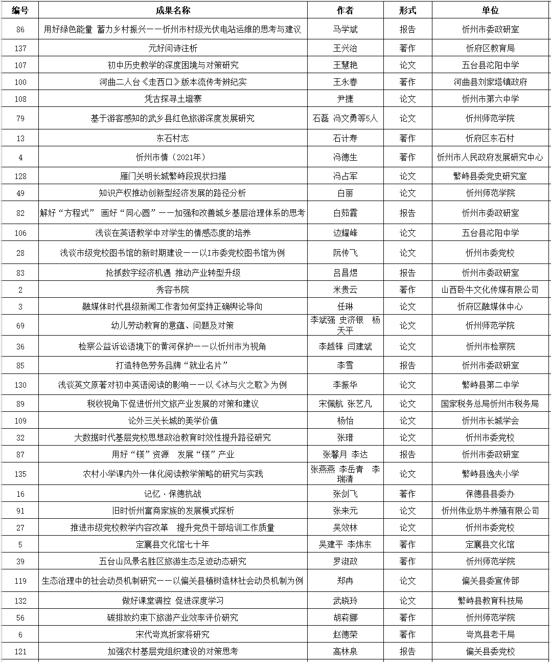附件:忻州市社會科學(xué)研究優(yōu)秀成果評獎擬獲獎名單
