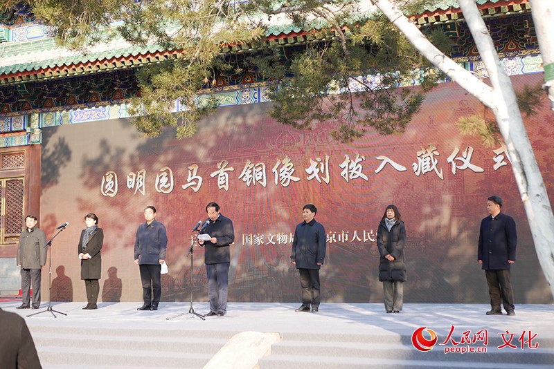 人民網(wǎng)北京12月1日電(韋衍行) 12月1日上午9時(shí),國(guó)家文物局、北京市人民政府在圓明園正覺(jué)寺舉行圓明園馬首銅像劃撥入藏儀式。國(guó)家文物局正式將圓明園馬首銅像劃撥北京市海淀區(qū)圓明園管理處收藏,馬首成為第一件回歸圓明園的流失海外重要文物,《百年夢(mèng)圓——圓明園馬首銅像回歸展》同期開(kāi)展。