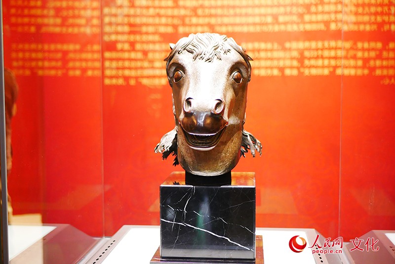 在圓明園展出的馬首銅像。人民網(wǎng) 韋衍行攝