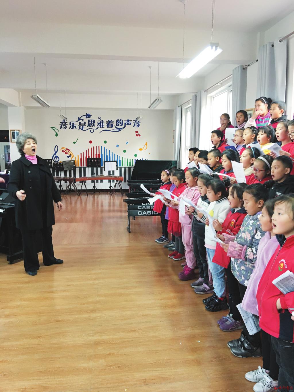 李克為靜樂(lè)童聲合唱團(tuán)排練節(jié)目