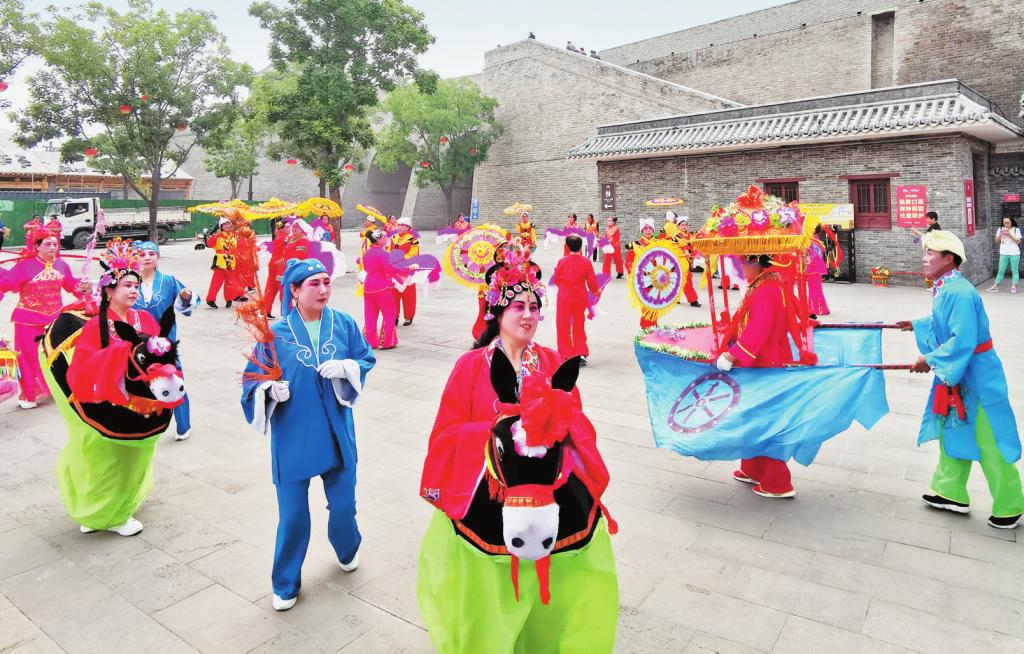 忻州“跑驢”俗稱“兜毛驢”,是民間舞蹈之一。伴奏以歡快、喜慶的八音為主,或可現(xiàn)場用嗩吶、小鼓、大鈸和小鈸等伴奏。“跑驢”表演多以一男一女為一組(也有女扮男裝的),表演節(jié)目有“夫妻探親”“回娘家”“趕集路上”等。其中以小媳婦兒回娘家和表現(xiàn)農(nóng)村老漢和農(nóng)村老大娘的故事情節(jié)較為普遍。表演時小媳婦“騎驢”磨磨蹭蹭、小伙子趕“驢”風(fēng)情萬種,運(yùn)用舞蹈動作夸張地演繹驢的倔強(qiáng)和趕驢者的執(zhí)著?!芭荏H”的舞步很多,有平閃步、上山步、下山步、小跑步、驚驢步、后踢步、過河步等。表演形式有踩四腳、卷白菜、龍盤柱等,表演者即興使用,不受限制。演員相互配合,表演動作夸張,“騎驢上路”“騎驢下坡”“騎驢過河”“失蹄臥水”“毛驢抖水”“驢失前蹄”“毛驢跳躍”等舞姿,生動活潑、詼諧幽默、趣味無窮,備受歡迎。(市文化館供稿)