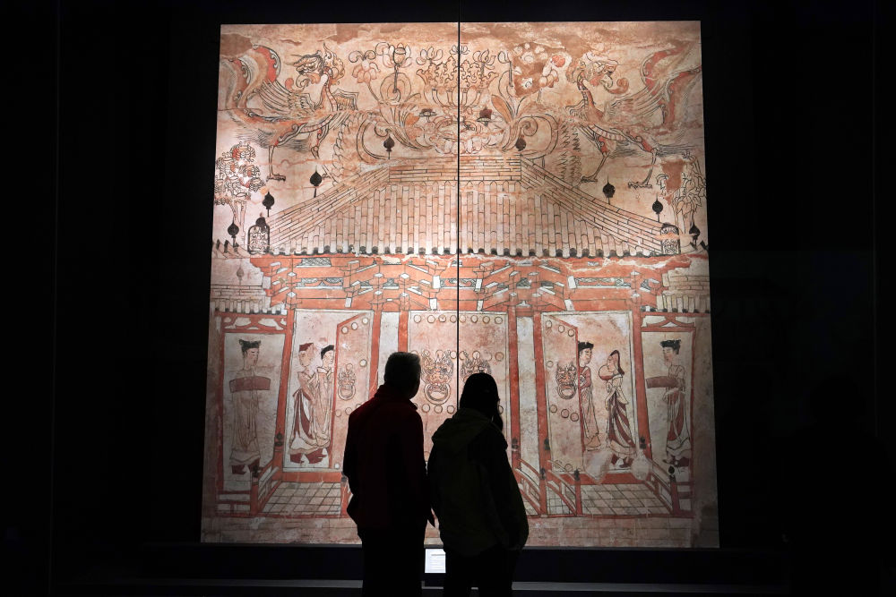 參觀者在太原北齊壁畫博物館欣賞壁畫(2024年3月21日攝)。新華社記者詹彥 攝