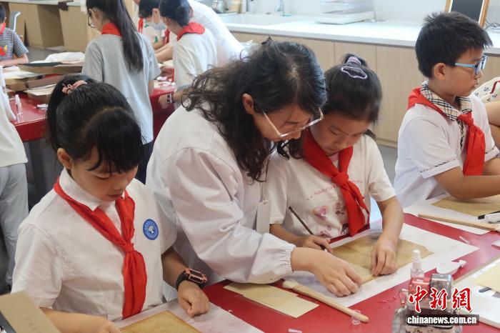 8月12日,學生體驗檔案修復(fù)現(xiàn)場。 孫琳茹 攝