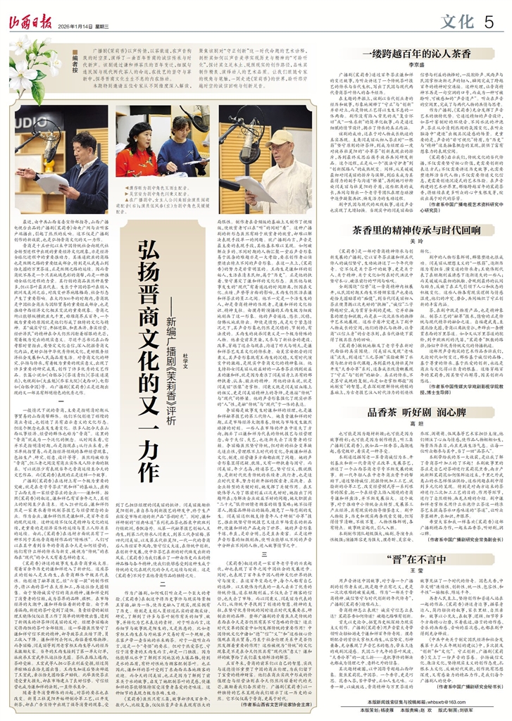 廣播劇《茉莉香》以聲傳情,以茶載道,在聲音構筑的時空里,演繹了一曲百年晉商的誠信傳承與時代新聲。該劇通過謙和祥茶莊的百年變遷,細膩勾連民國與現代兩代茶人的命運,在技藝的堅守與革新中,探尋晉商文化生生不息的內在脈動。