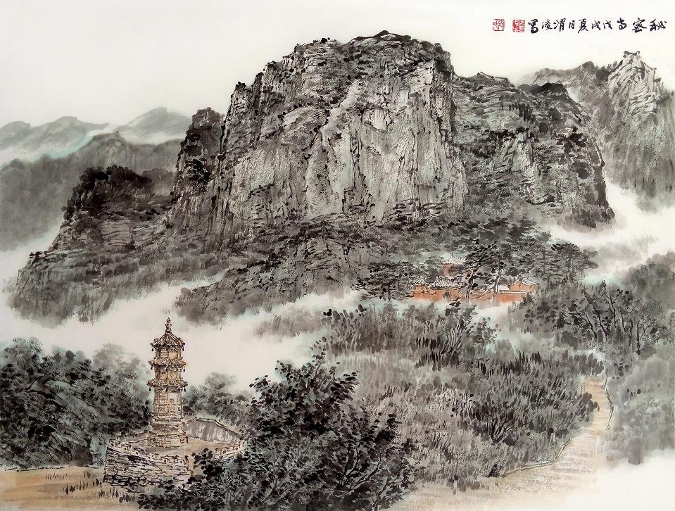 認(rèn)識殷渭凌,是先認(rèn)識他的畫,前幾年在一次省里畫展上看到了一幅山水畫,淳樸、厚重,樸實(shí)的親切、厚重的實(shí)在,完全沒有近幾年流行的風(fēng)氣,也沒有長期臨摹傳統(tǒng)繪畫形成的習(xí)氣。正如一個從鄉(xiāng)村走出來的小伙,健康、有朝氣、單純、樸實(shí)、憨厚、怯生生的站在那里,給我留下了很深的印象。因?yàn)樾弥莸貐^(qū)畫山水的人不多,很快就認(rèn)識了渭凌。果然人如其畫,淳樸、厚道、話不多、為人真誠,是個畫畫肯下功夫的小伙子。后來省美協(xié)山水畫藝委會的活動都有他的身影,畫越畫越多,畫的也越來越好,但是畫面中那種親切、樸實(shí)、厚重、蒼茫的特點(diǎn)卻一點(diǎn)兒也沒有丟失。濃濃的泥土氣息生發(fā)于筆墨中,散發(fā)在畫面里,在展廳里感染著每一個觀眾。晉西北風(fēng)情在他的營造下得到了充分的體現(xiàn)。