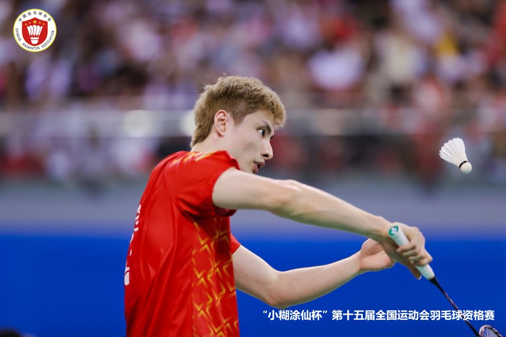 8月18日,江蘇隊(duì)石宇奇在第十五屆全國(guó)運(yùn)動(dòng)會(huì)羽毛球資格賽中回球。(組委會(huì)供圖)