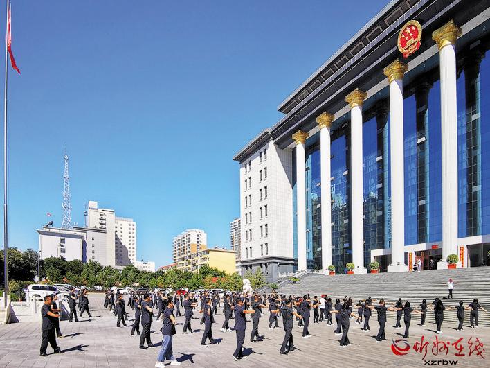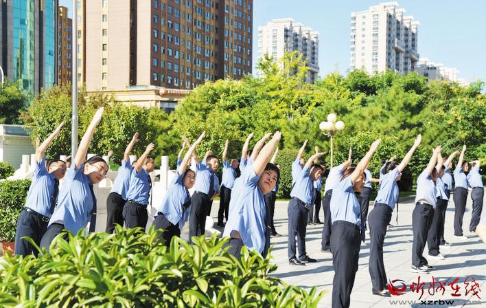 9月3日,市體育局在全市組織開展的“文明忻州、全民健身”系列活動(dòng)拉開了帷幕。圖為作為我市首批健身示范單位的市公安局、市人民檢察院、市中級人民法院正在組織全體干警職工做工間操。(張存良 攝影報(bào)道)