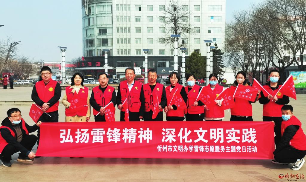 3月21日,忻州市文明辦機(jī)關(guān)支部全體黨員開展“弘揚(yáng)雷鋒精神 深化文明實踐”志愿服務(wù)主題黨日活動。本次活動旨在進(jìn)一步弘揚(yáng)雷鋒精神,激發(fā)廣大人民群眾“學(xué)雷鋒見行動”的積極性和創(chuàng)造性,凝聚起奮進(jìn)新征程、建功新時代的強(qiáng)大精神力量和有力的道德支撐。