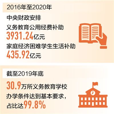目前,全國1.54億城鄉(xiāng)義務教育階段學生都享受著一份“大禮包”:免除學雜費、免費提供教科書,家庭經(jīng)濟困難學生還能補助生活費。2016年至2020年,中央財政共安排義務教育公用經(jīng)費補助3931.24億元,家庭經(jīng)濟困難學生生活補助435.92億元,免費教科書補助712.13億元。